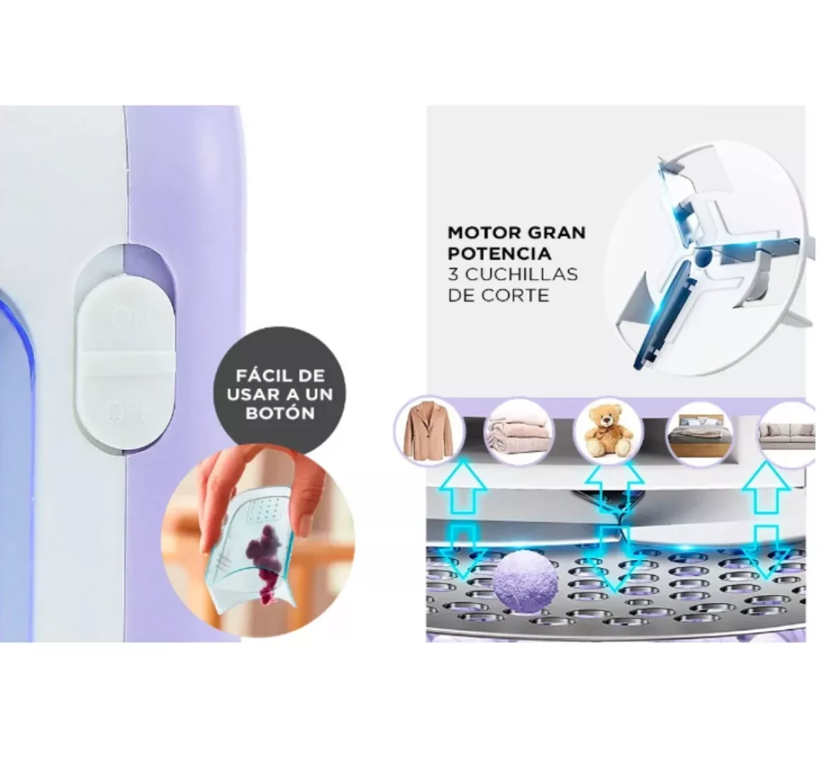 Esta máquina puede quitar fácilmente bolas de pelusa y pelotitas, son adecuados para tus suéteres, mantas, sábanas de cama, tapicería, sofá, cortinas, peluches y más. Mantén todo con aspecto nuevo!